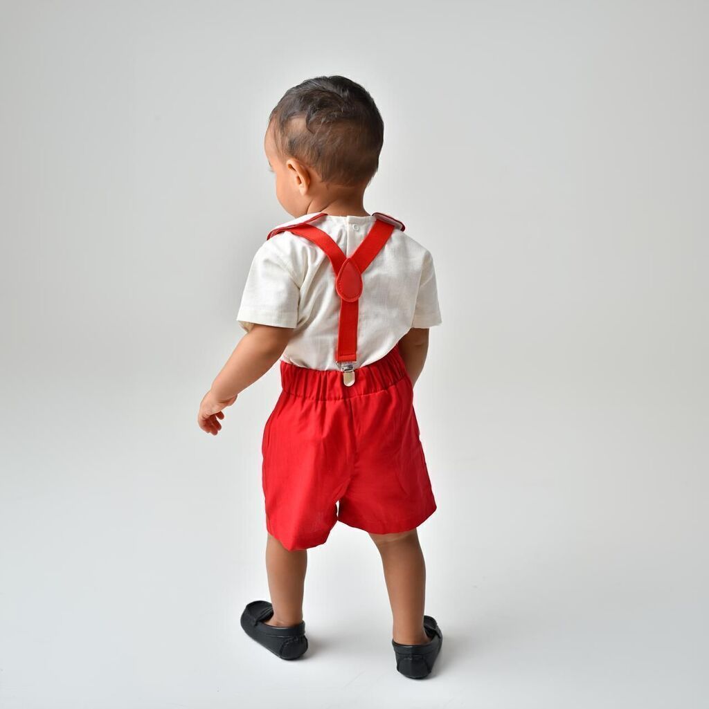 Lindo conjunto composto por blusa de cambraia de algodão bordada a mão e short de alfaiataria! Clássico e atemporal, digno de um princepezinho!