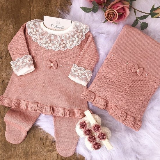 Com o toque macio e gostoso para o bebê a saída Sophia é delicadamente bordada com pérolas na cintura, sendo arrematada por um lindo lacinho central.