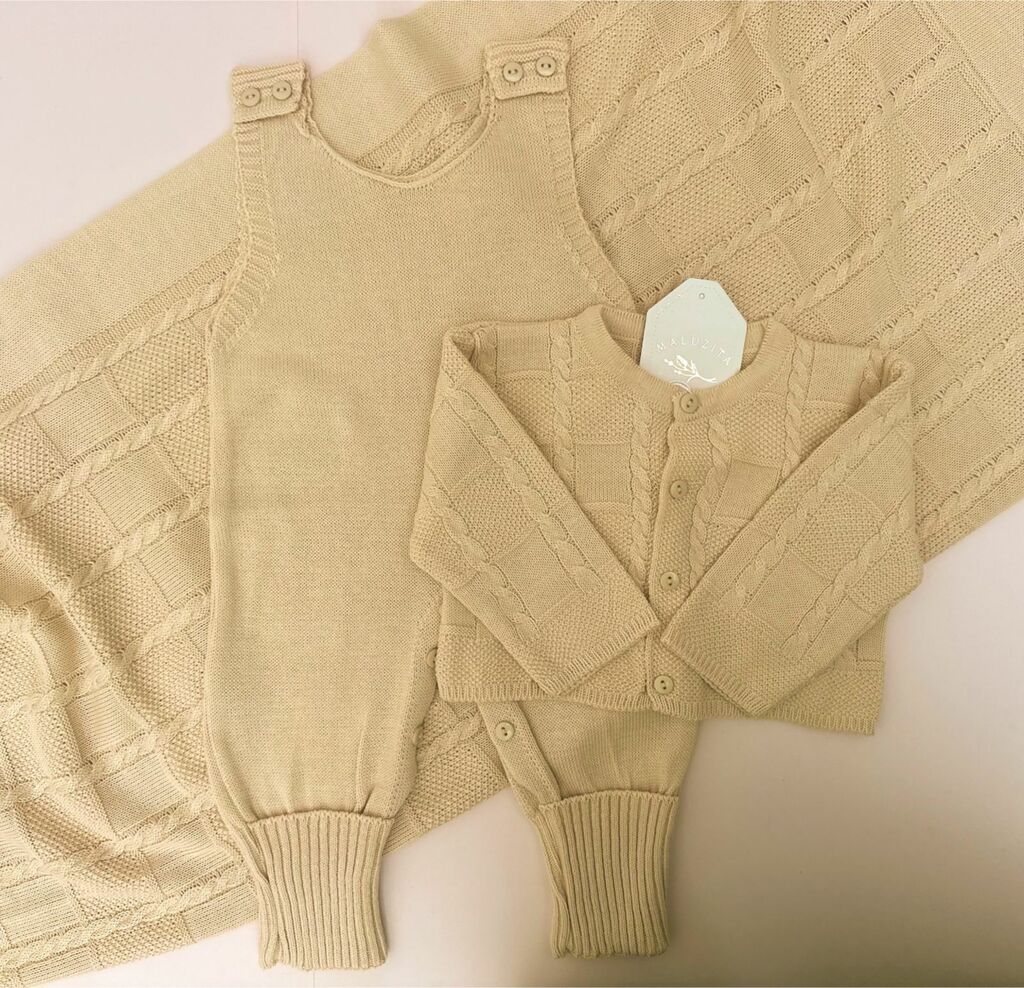 Composta por um macacao, um casaquinho lindo e uma manta, todos super fresquinhos, pronto para apaixonar