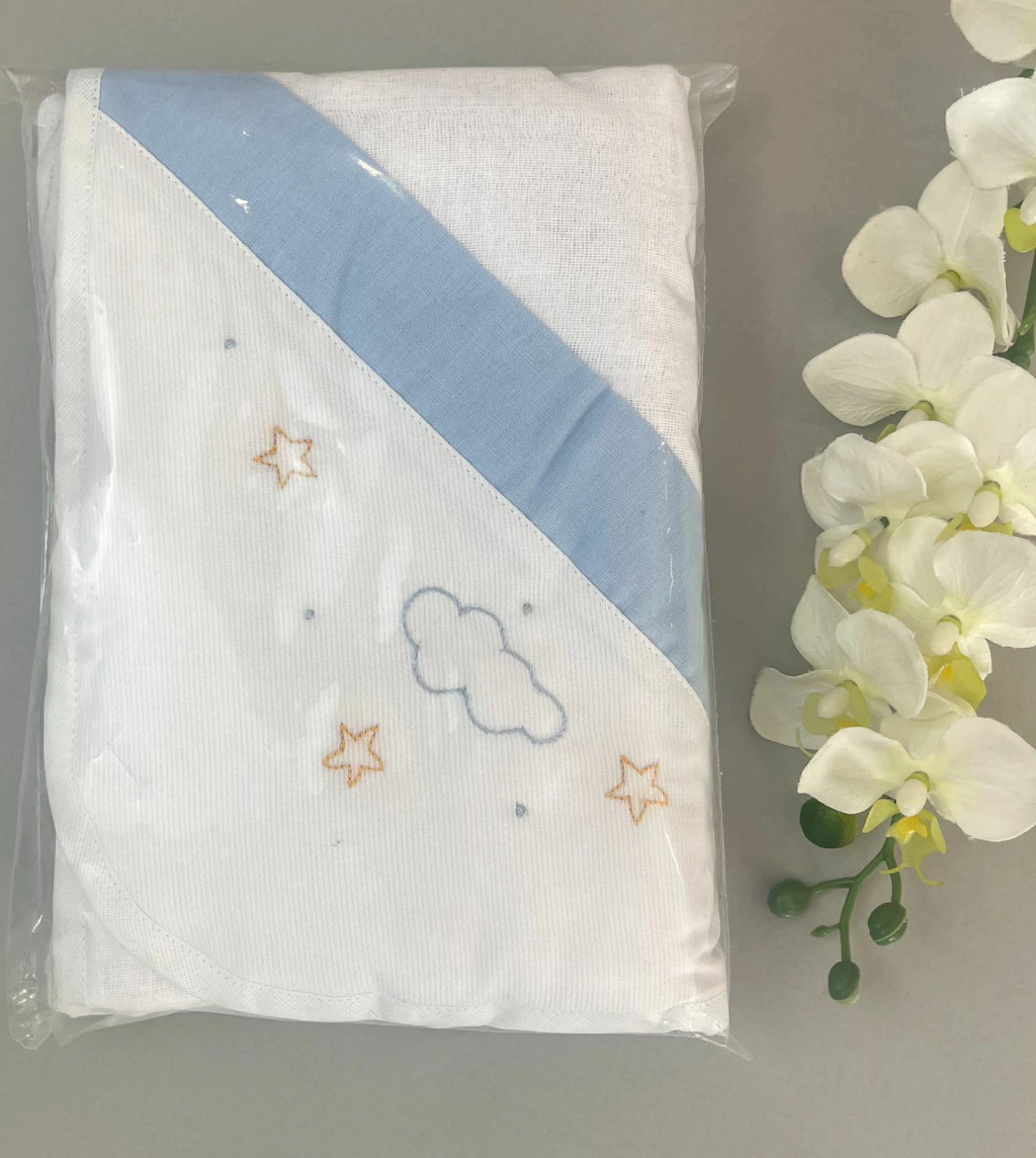 Linda toalha de banho com capuz com dupla camada: tecido atoalhado e revestimento de fralda, garantindo o conforto do bebê!