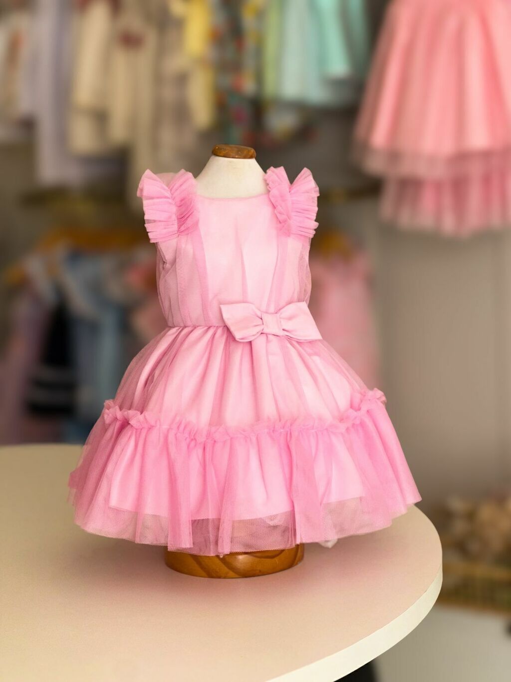 Lindo vestido de festa inteiramente sobreposto com delicada camada de tule! Detalhe nas alças, trazendo ainda mais sofisticação e arrematado na cintura por lacinho lateral! Um sonho!