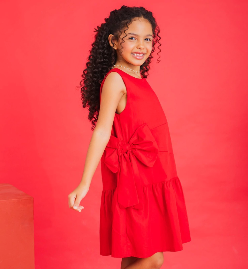 Lindo vestido em tricoline 100% algodão, modelagem evasê com delicados babados na barra! O laço lateral arremata, trazendo requinte e charme!